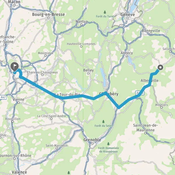 Continuer et rejoindre A43 E70. Continuer sur 80 kilomètres