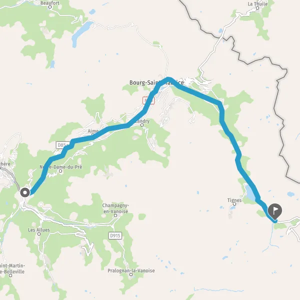 Au rond-point, prendre la 1ère sortie sur D902 (Route de Val-d'Isère) et continuer sur 5,4 kilomètres