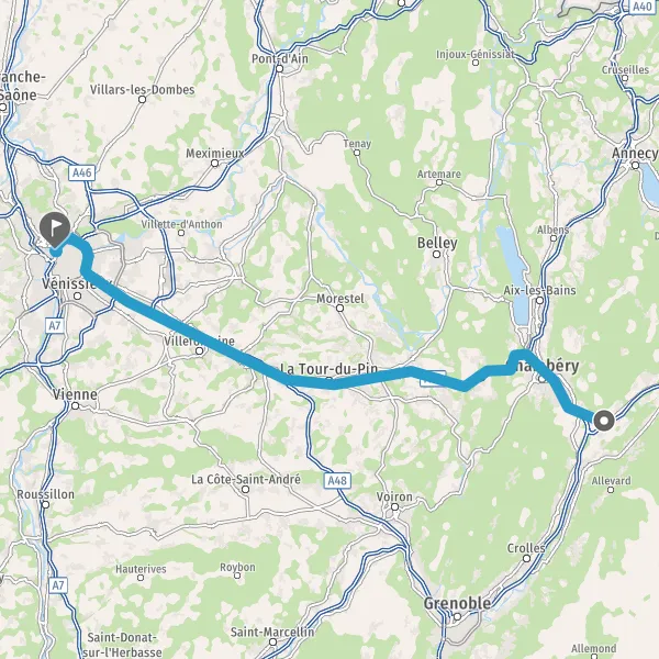 Continuer et rejoindre A43 E70. Continuer sur 80 kilomètres