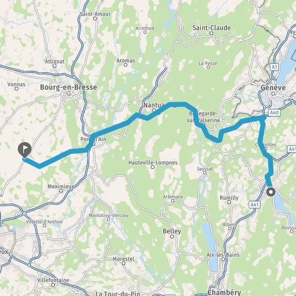 Prendre à droite et rejoindre A41. Continuer sur 25 kilomètres
