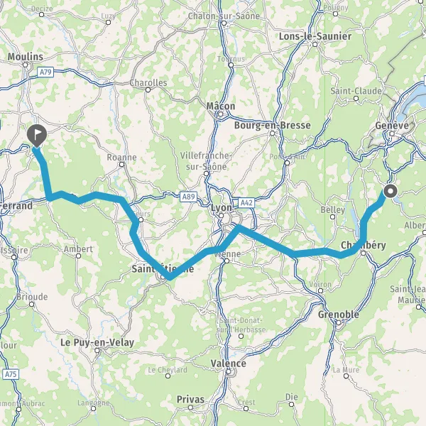 Continuer et rejoindre A89 E70. Continuer sur 55 kilomètres