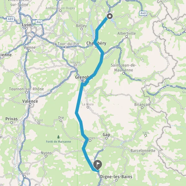 Continuer et rejoindre N201 E712 E70 (Avenue du Bourget-du-Lac). Continuer sur 16 kilomètres