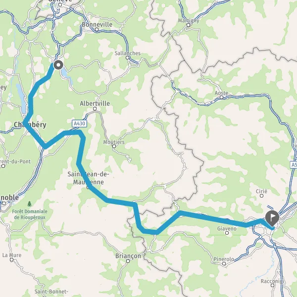 Prendre à droite et rejoindre A43 E70. Continuer sur 65 kilomètres