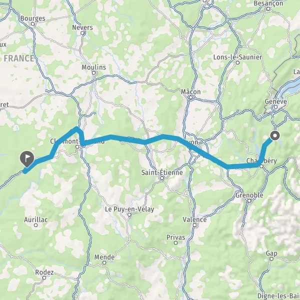 Prendre à droite et rejoindre A89 E70. Continuer sur 92 kilomètres