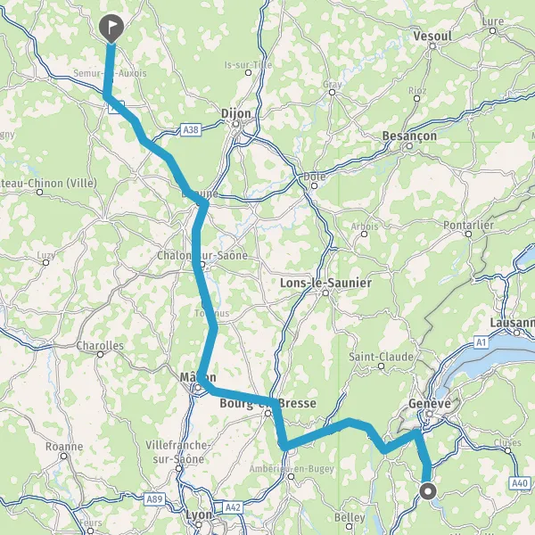 Prendre à droite et rejoindre A41. Continuer sur 25 kilomètres