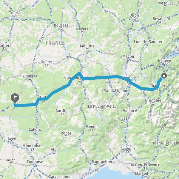 Prendre à droite et rejoindre A89 E70. Continuer sur 161 kilomètres
