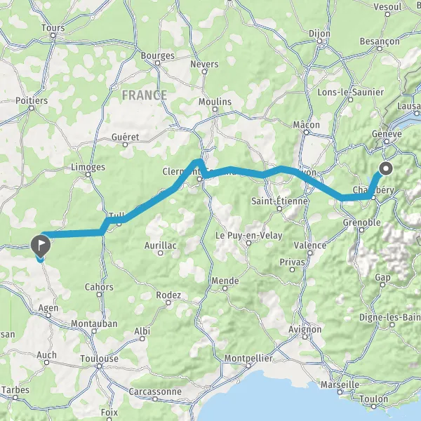 Prendre à droite et rejoindre A89 E70. Continuer sur 161 kilomètres