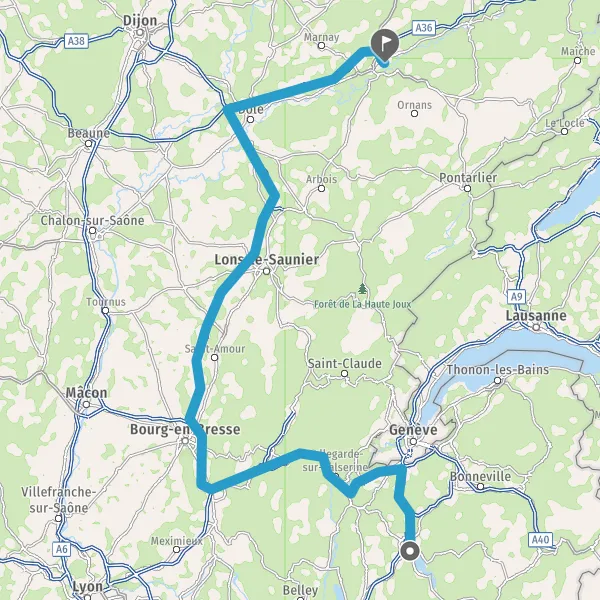 Prendre à droite et rejoindre A41. Continuer sur 25 kilomètres