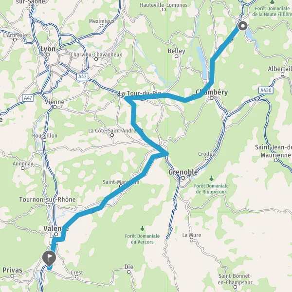 Prendre à droite et rejoindre A49. Continuer sur 71 kilomètres