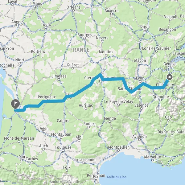 Prendre à droite et rejoindre A89 E70. Continuer sur 161 kilomètres