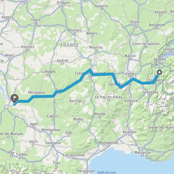 Continuer et rejoindre A89 E70. Continuer sur 154 kilomètres