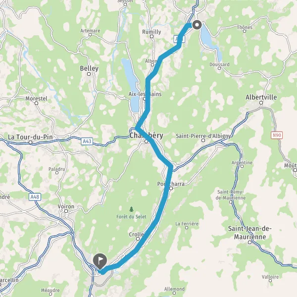 Continuer et rejoindre N201 E712 E70 (Avenue du Bourget-du-Lac). Continuer sur 16 kilomètres