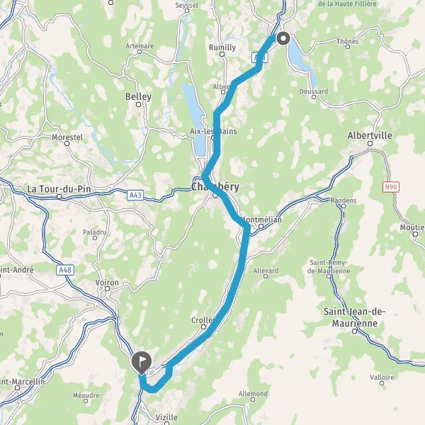 Continuer et rejoindre N201 E712 E70 (Avenue du Bourget-du-Lac). Continuer sur 16 kilomètres