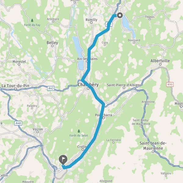 Continuer et rejoindre N201 E712 E70 (Avenue du Bourget-du-Lac). Continuer sur 16 kilomètres