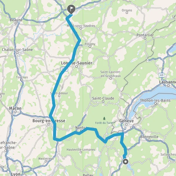 Prendre à droite et rejoindre A41. Continuer sur 25 kilomètres