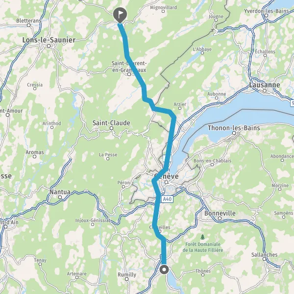 Tourner à droite sur N5 (Route de Genève) et continuer sur 14 kilomètres