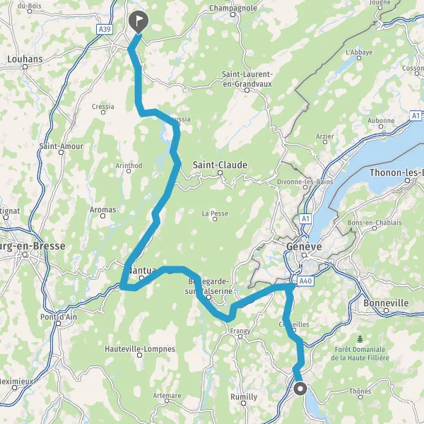 Prendre à droite et rejoindre A41. Continuer sur 25 kilomètres