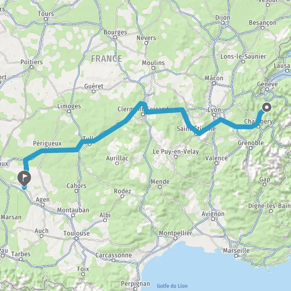 Prendre à droite et rejoindre A89 E70. Continuer sur 161 kilomètres