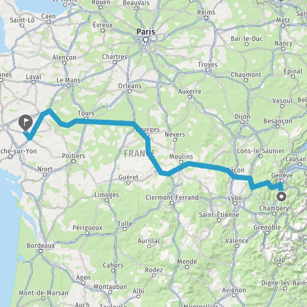 Prendre à droite et rejoindre A85 E604. Continuer sur 205 kilomètres