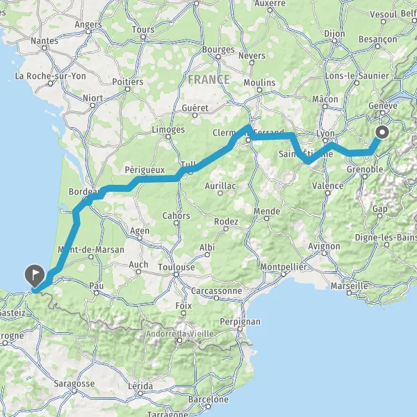 Prendre à droite et rejoindre A63. Continuer sur 205 kilomètres