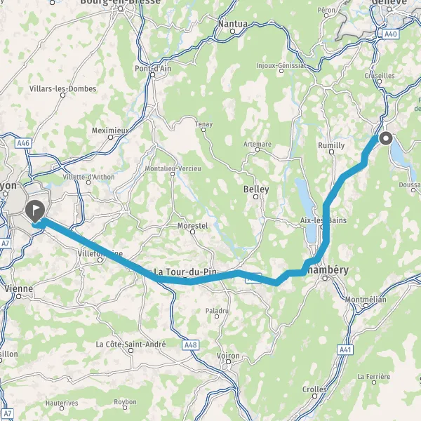 Continuer et rejoindre A41 E712. Continuer sur 40 kilomètres