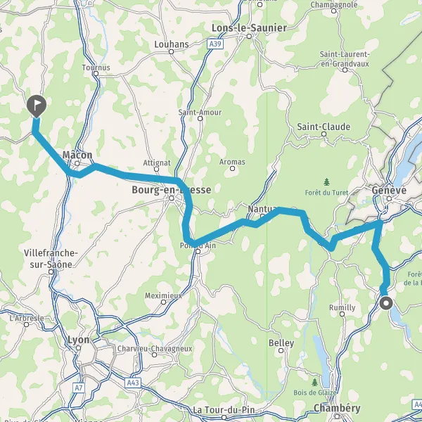 Prendre à droite et rejoindre A41. Continuer sur 25 kilomètres