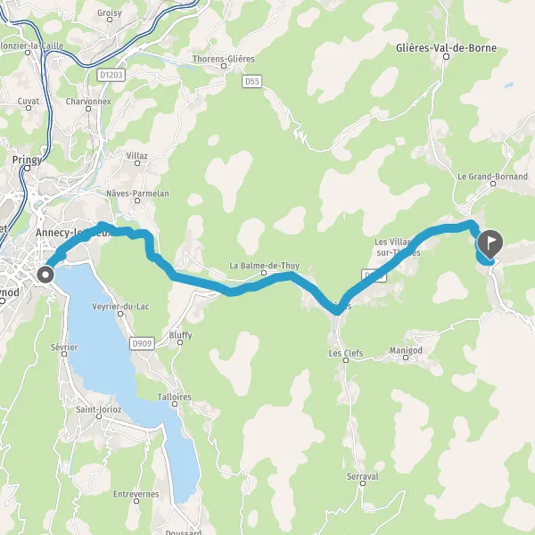 Au rond-point, prendre la 2ème sortie sur D909 (Route d'Annecy) et continuer sur 1,3 kilomètre
