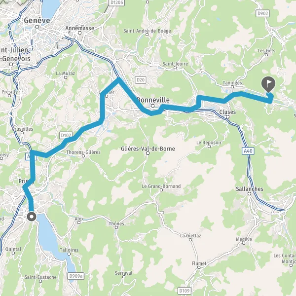 Tourner à gauche sur D902 (Route de Cluses) et continuer sur 1,5 kilomètre