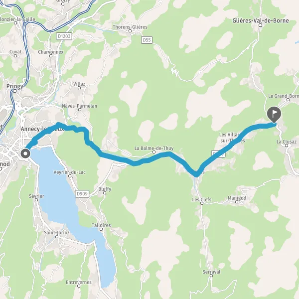 Au rond-point, prendre la 2ème sortie sur D909 (Route de Thônes) et continuer sur 4,5 kilomètres