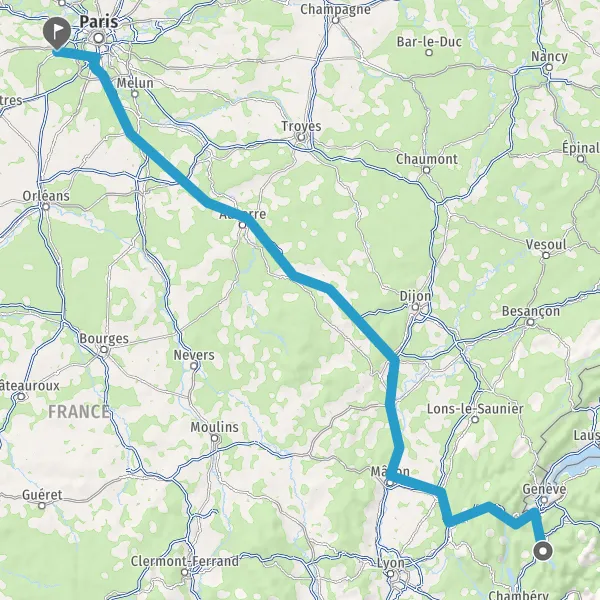 Prendre à droite et rejoindre A6. Continuer sur 294 kilomètres