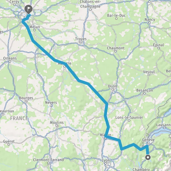 Prendre à droite et rejoindre A6. Continuer sur 294 kilomètres