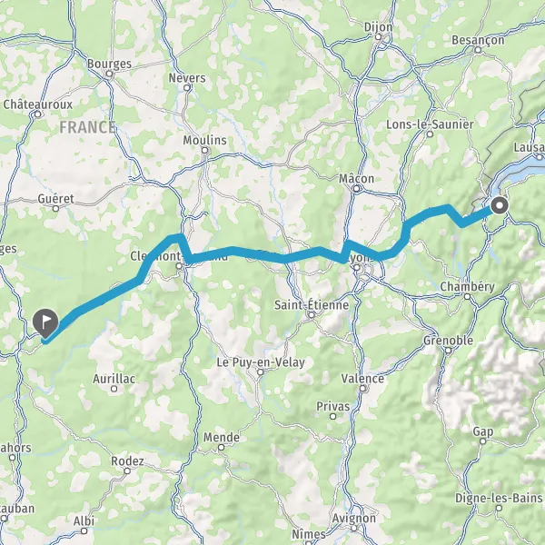 Continuer et rejoindre A89 E70. Continuer sur 83 kilomètres