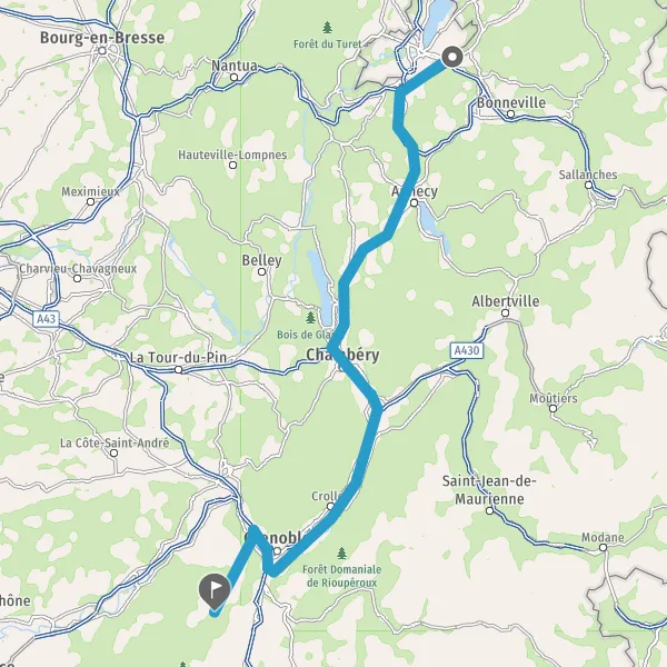 Continuer et rejoindre N201 E712 E70 (Avenue du Bourget-du-Lac). Continuer sur 16 kilomètres