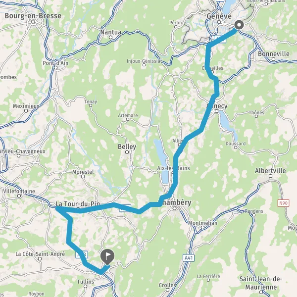 Prendre à gauche et rejoindre A41. Continuer sur 69 kilomètres