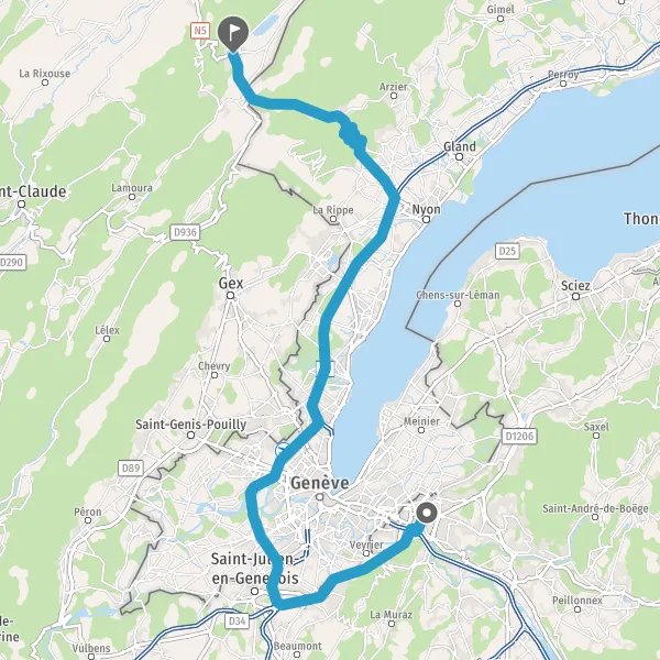 Au rond-point, prendre la 4ème sortie sur D1206 (Route d'Étrembières) et continuer sur 800 mètres