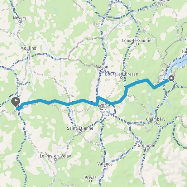 Continuer et rejoindre A89 E70. Continuer sur 77 kilomètres