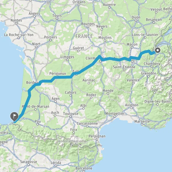 Prendre à droite et rejoindre A63. Continuer sur 192 kilomètres
