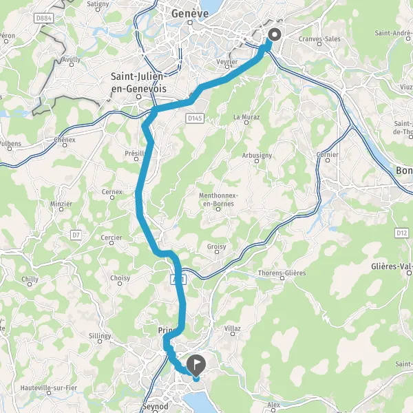 Au rond-point, prendre la 4ème sortie sur D1206 (Route d'Étrembières) et continuer sur 800 mètres