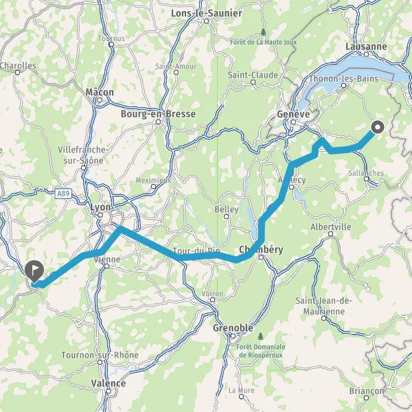 Prendre à gauche et rejoindre A46 E15 E70. Continuer sur 21 kilomètres