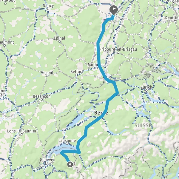 Entrer en Suisse et prendre 21 (Route Cantonale) sur 4,6 kilomètres