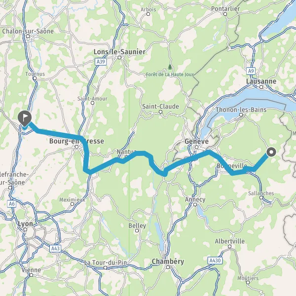 Prendre un ticket (Péage Viry) Autoroute Blanche-Tunnel du Vuache Autoroute Blanche-Tunnel de Châtillon Autoroute Blanche-Tunnel de Saint-Germain Autoroute Blanche-Tunnel de Chamoise 60 km