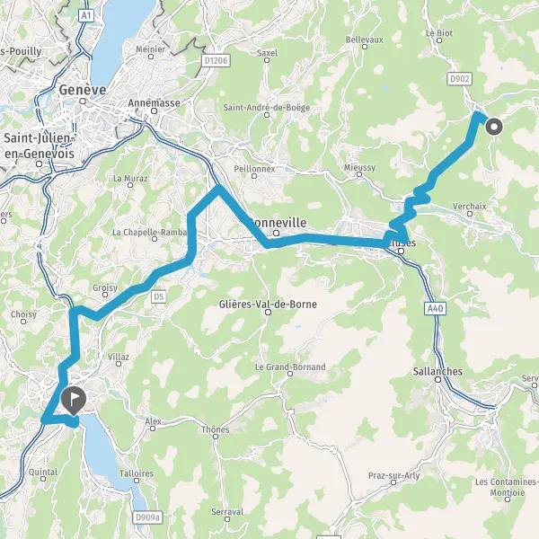 Tourner légèrement à droite sur D902 (Route de Taninges) et continuer sur 1 kilomètre