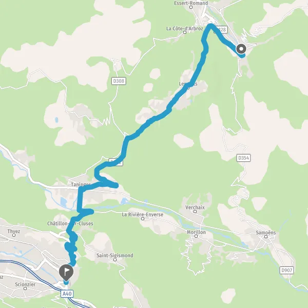 Au rond-point, prendre la 2ème sortie sur D902 (Route de Taninges) et continuer sur 280 mètres