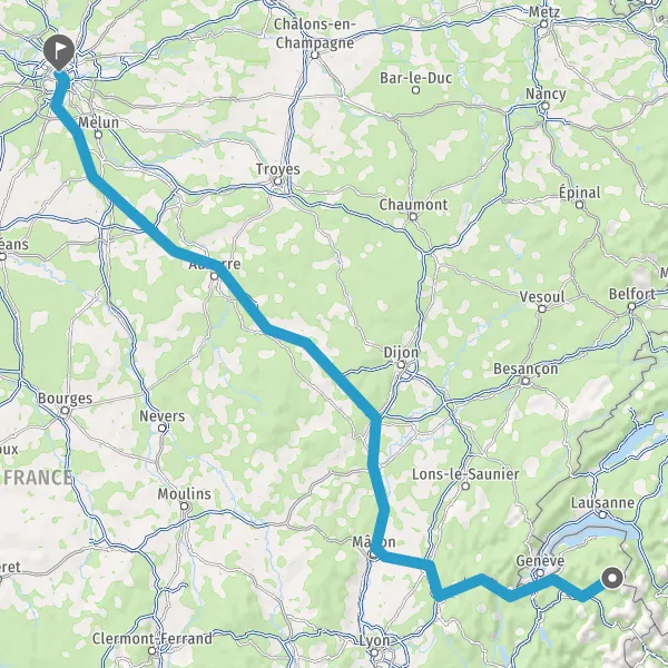 Prendre à droite et rejoindre A6. Continuer sur 294 kilomètres