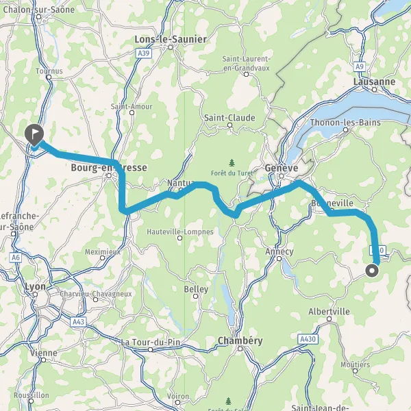 A40ClusesGenèveAnnecyThonon-les-BainsEvian-les-BainsLyonParis