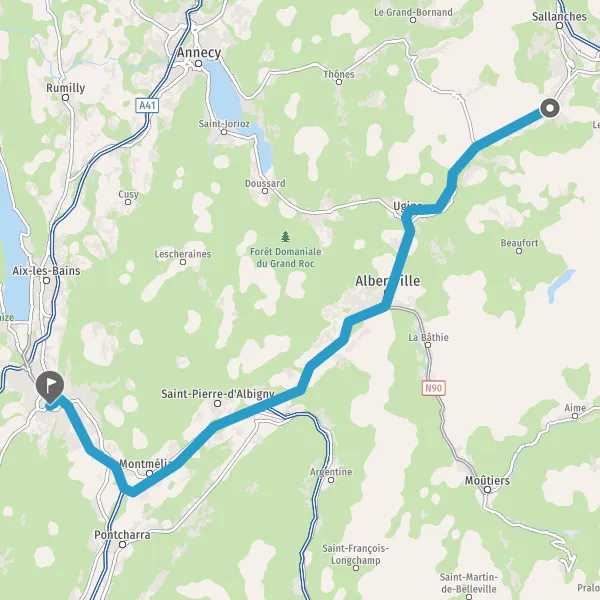 Au rond-point, prendre la 1ère sortie sur D1212 (Avenue de Savoie) et continuer sur 2,6 kilomètres