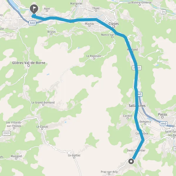 Sortir et rejoindre D1205 (Route de Cluses). Continuer sur 650 mètres