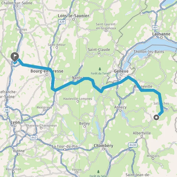 A40ClusesGenèveAnnecyThonon-les-BainsEvian-les-BainsLyonParis