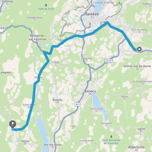 Sortir et rejoindre D1201a (Route du Bourget). Continuer sur 1,5 kilomètre