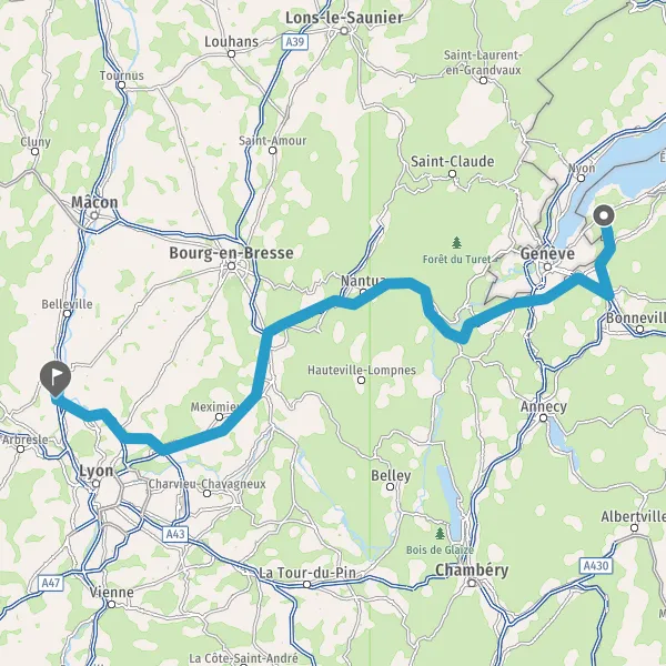 Prendre à droite et rejoindre D306 (Route de Lyon). Continuer sur 800 mètres
